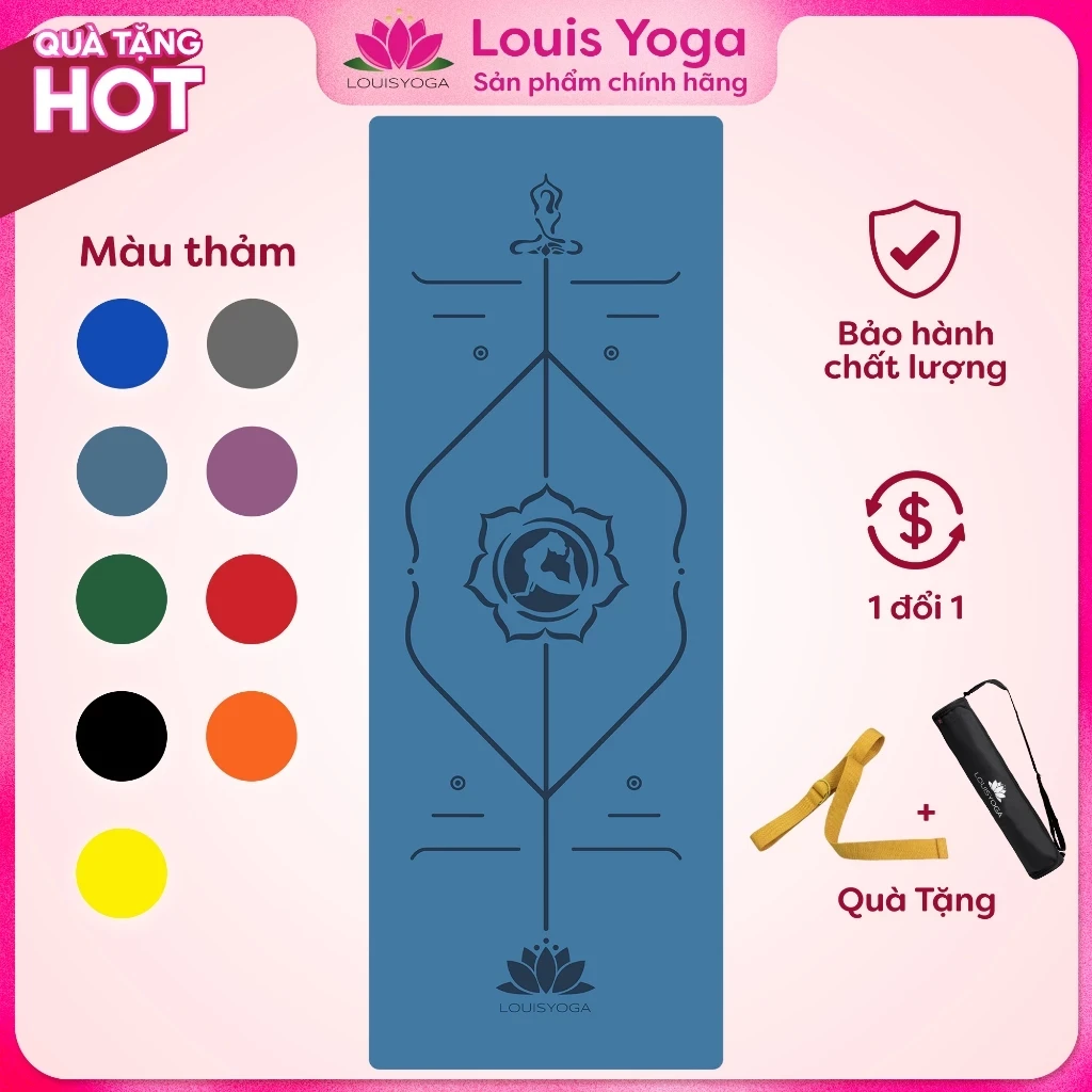 📌1. THÔNG TIN SẢN PHẨM + Độ dày: 5mm + Chất liệu: Cao su tự nhiên + Kích thước: 183cm x 68cm + Cân nặng: ~ 3.2kg - 3.4kg + Đường định tuyến: Khắc Lazer + Bề mặt: Mặt bóng 📌2. CÂU CHUYỆN CỦA LOUIS YOGA - BASIC Trong Yoga, sự đơn giản là nền tảng của mọi sự phát triển. Đó là những tư thế đầu tiên, những hơi thở chậm rãi giúp bạn tìm thấy sự cân bằng trong cơ thể và tâm trí. Thảm Louis Yoga BASIC được thiết kế để tôn vinh hành trình ấy – với họa tiết người tập Yoga ở chính tâm, bao quanh là bông hoa sen đá nhẹ nhàng che chở, tựa như sự nâng đỡ của hơi thở và sự tập trung. Mỗi cánh hoa tỏa ra bên ngoài, như biểu tượng cho sự mở rộng và tiến bộ không ngừng. Louis Yoga hy vọng rằng, với thảm Louis Yoga BASIC, bạn sẽ tìm thấy sự thoải mái, ổn định và vững vàng trong từng động tác, dù bạn mới bắt đầu hay đang tiếp tục khám phá chiều sâu của Yoga. 📌3. ƯU ĐIỂM CỦA THẢM LOUIS YOGA - BASIC - Hệ thống định tuyến in rõ nét, chính xác cùng màu sắc sang trọng: Giúp bạn vào tư thế tập luyện dễ dàng, an toàn và hiệu quả hơn. - Thảm được thiết kế đặc biệt với công nghệ 2 lớp: + Mặt trên: Mặt bóng, chất liệu cao su tự nhiên: Siêu thấm hút mồ hôi, độ bám tốt, an toàn với làn da, thân thiện với môi trường. + Mặt dưới: Thiết kế các vân sóng: Chống trơn trượt, tăng cường độ bám với bề mặt sàn, giảm nguy cơ trơn trượt trong quá trình tập luyện. - Với nhiều năm kinh nghiệm và các giải thưởng uy tín, Louis Yoga tự hào mang đến sản phẩm đạt tiêu chuẩn chất lượng cao nhất. Được kiểm định nghiêm ngặt và đạt mọi tiêu chuẩn chất lượng, sản phẩm Louis Yoga đảm bảo an toàn tuyệt đối cho người dùng. 📌4. HƯỚNG DẪN SỬ DỤNG & BẢO QUẢN ✅4.1. Cách cuộn thảm đúng chuẩn - Bước 1: Bạn gập 1/4 mặt trên của thảm vào trong, sao cho 2 mép dài của thảm được song song. - Bước 2: Bạn đặt 2 tay lên phần đầu thảm. - Bước 3: Bạn cuộc tròn thảm lại về phía người. - Bước 4: Bạn dựng đứng thảm, chỉnh sửa và cho vào túi. ✅4.2. Cách vệ sinh thảm đúng chuẩn - Bước 1: Bạn dùng dung dịch vệ sinh thảm xịt đều lên toàn bộ bề mặt thảm. - Bước 2: Bạn chuẩn bị 1 chiếc khăn ẩm, có sợi vải mềm. - Bước 3: Bạn lau toàn bộ bề mặt thảm và đợi thảm khô. 📌Lưu ý: KHÔNG phơi thảm dưới ánh nắng mặt trời, KHÔNG sấy, nên để thảm khô tự nhiên, phơi trong phòng điều hoà hoặc nơi thoáng mát. ✅4.3. Lưu ý quan trọng - Lưu ý 1: KHÔNG phơi thảm dưới ánh nắng mặt trời. - Lưu ý 2: KHÔNG cuộn mặt trên của thảm vào trong. - Lưu ý 3: KHÔNG giặt thảm như giặt quần áo. - Lưu ý 4: KHÔNG gấp mặt trên của thảm vào nhau. - Lưu ý 5: KHÔNG cuộn thảm khi thảm ướt.